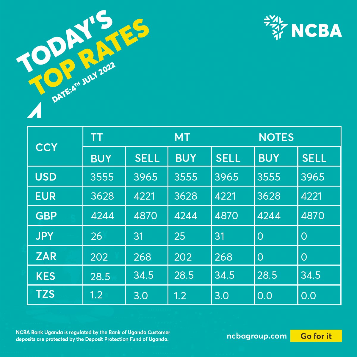 Ncba Bank Uganda On Twitter Today S Forex Rates Visit Any Of Our Branches Near You To Exchange Your Currency Goforit Https T Co Zwgh3syzb5 Twitter